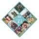 Create a sweet keepsake of your school years with this custom grad cap topper. Customize with 9 square photos of your family, friends, relationship, pets, vacations or favourite memories. Personalize the centre with your class year and school name in white lettering on a vibrant turquoise aqua background.
