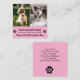 This is a sleek, square business card template for a dog kennel, boarding, or pet-sitting service. The front features a two-photo collage, ideal for showcasing happy, healthy dogs. Below the photos, there's a space for your kennel's name and a tagline. The back is a simple, clean layout with all the essential contact details—your name, phone number, website, email, and social media handles. A cute paw print with a heart inside adds a charming touch. This modern and unique square design will help your business stand out.