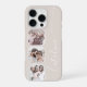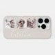 This chic phone case offers a stylish way to personalize your device with a soft, neutral beige background. It features three charming rounded square frames down one side, perfect for showcasing your cherished photos. A graceful, flowing script and subtle lines accent the other side, adding a touch of elegant personalization that truly makes it yours.