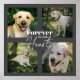 This custom pet memorial poster in a muted grey commemorates the life and love of a beloved dog, cat or other pet. Featuring a sweet labrador and the well known phrase, "Forever in our hearts" in the centre, and surrounded by a photo collage of memories from your pet's life. Customize with your own pet photos. You can add up to four different photographs for a wonderful keepsake of the good times. This would make a thoughtful gift for any devoted dog owner who has suffered pet loss.