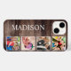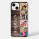 Create your own personalized 4 photo collage phone case with your custom images on a rustic dark brown farmhouse style wooden plank background. The design also features your name or monogram. Add your favourite photos, designs or artworks to create something really unique.