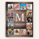 Create your own personalized 14 photo collage notebook with your custom images on a rustic dark brown farmhouse style wooden plank background. The design also features your name or monogram. Add your favourite photos, designs or artworks to create something really unique.