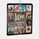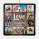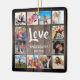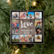 Create your own personalized 12 photo collage Christmas holiday ornament with your custom images on a rustic farmhouse style wooden plank background. The design also features your family name, established year and a "Love" handwritten script. Add your favourite photos, designs or artworks to create something really unique.