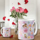 Custom Photo Conversation Candy Hearts Coffee Mug, Pretty Pink Blue Red Hearts Pattern