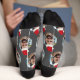 These cute "Custom Photo Christmas Socks in Grey" are perfect for a boyfriend or girlfriend and feature a charming offset pattern of red and white Santa hats on your own photo. They're the perfect way to show your love this holiday season! These socks make an excellent Christmas stocking stuffer, especially for any sock enthusiast. Plus, the background colour can be personalized to suit your style!
