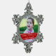 Merry Christmas dad holiday decoration with customizable text and a place to add your own special family photo in stylish red and white. The perfect personalized gift this holiday season for dad.