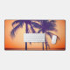 Custom photo desk mat for office or work bench. Personalize with your own picture and text. Tropical sunset with palm trees example.
