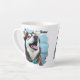This customizable photo latte mug is the perfect way to celebrate your beloved dog, "Snow", or any favorite pet! Featuring a beautiful brown and white Husky with striking blue eyes, the design is framed by a stylish distressed blue watercolor background. It's easy to personalize—simply replace the sample photo and text with your own pet's picture and name. A unique, cherished gift for any dog mom, dog dad, or animal lover. Enjoy your favorite coffee or tea in this special 12 oz. mug.