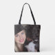 Design your own 2 sided photo tote with your custom photo a featuring full bleed image template. Easily upload your own photos with your own family, pets, or couple.