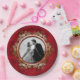 Custom Photo Elegant Red Gold Rose Drops Paper Plate