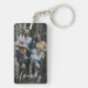 Custom keychain features your favourite photo(s) with a white "family" script overlay design that includes elegant flourishes. The white text colour can be modified to your favourite colour. You can choose one photo or opt to have one photo on the front and another on the back to make this uniquely yours. Order today for yourself or to give as the perfect gift for that special person.