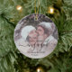 Custom Photo First Christmas Engaged Black Script Ceramic Ornament