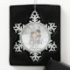 Custom Photo First Christmas Engaged Grey Script Snowflake Pewter Christmas Ornament