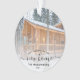 Commemorate your first Christmas in your new home with this beautiful modern keepsake ornament. The black text reads "First Christmas in our new home," with the words "new home" in elegant handwriting script with flourishes before and after. Replace the sample image with a photo of your new house and add your family's last name. A white gradient filter helps make the text pop.