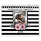 Custom Photo Floral Stripes Create Your Own 2022 Calendar. Editable calendar perfect for families with kids, newlywed couples, and best friends! Insert your own photos for a beautiful memory keepsake as you plan your year. Modern, romantic and elegant cover design with black white stripes and blush pink boho watercolor florals.