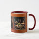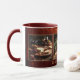 Personalized photo mug featuring 3 paintings with a wine theme (or your own photos) framed by a grunge burgundy design. With your custom funny (or other) texts. Lovely as a gift for a wine lover or as a birthday gift.
