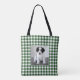 Custom Photo Green White Gingham Check Pattern Tote Bag