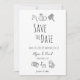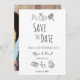 Announce your big day with charm and personality using this Whimsical Hand-Drawn Save the Date card with custom photo. Featuring fun black and white doodle-style illustrations—champagne glasses, rings, bouquet, cake, music notes and more—this unique wedding invitation is perfect for couples who want something playful yet minimal. Fully customizable with your photo, names, date, location, and wedding website, it sets the tone for a joyful celebration ahead.