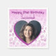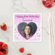 Make any special occasion fun with a heart shaped photo and message on a napkin with a purple linked heart pattern background. Replace the placeholder photograph with your photo. A square photo with subject centred within the square works best. Personalize the template fields, remove text or use the edit design tool to select a font style, size, and colour you prefer. The design can also serve for any birthday, graduation or bridal shower just to name a few special occasions.