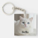 Custom photo keychain with cute white kitty cat