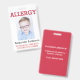 Custom Photo Kids Allergy Alert ICOE Warning Badge. Attach via a lanyard, metal clip, or retractable clip to a book bag, medicine kit or for a child to wear. Customize with your allergies, contact info or emergency instructions. Add your child's photo to front. Edit to change font and background colours or text style. Info can be written on front or backside. www.LilAllergyAdvocates.com