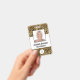 This badge features a trendy modern gold and black faux foil leopard print background. Customize it with your square photo, name, job title, logo, company name, address or other information, and optional barcode.
