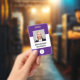 Custom Photo Logo Barcode Modern Purple White Badge