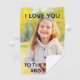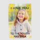 Personalized golf towel with your own photo. The photo template is set up for you to upload one of your favourite pictures of your child, partner, parent etc. The wording sits as a typography overlay on your photo and reads "I love you to the rough and back". A fun and unique golfer gift for mom, dad, husband for father's day, mother's day, Christmas or any special occasion.