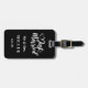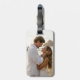 Custom photo luggage tag is shown with a Mr. & Mrs. Just Married text.