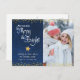 Custom Photo Merry Bright Script Gold Star Blue Holiday Postcard