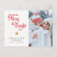 Custom Photo Merry Bright Script Gold Star Rustic Holiday Postcard