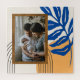 This stylish custom puzzle features a modern Matisse inspired abstract botanical illustration in cobalt blue and yellow framing your favourite photo.