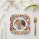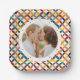 Custom Photo Modern Colourful Personalized Paper Party Plates features a colourful modern geometric pattern with your favourite photo in the centre. PHOTO TIP: centre your photo prior to uploading to Zazzle. Designed by Evco Studio www.zazzle.com/store/evcostudio
