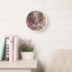 Custom Photo Modern Writing Scattered Pink Hearts Clock