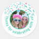 Custom Photo Name Confetti Birthday Thank You Classic Round Sticker