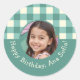 Custom Photo Name Plaid Gingham Birthday Party Classic Round Sticker