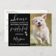 Add your pup's favourite photo and personalize with puppys name and family name ! Type your personal message to family and friends on the back or delete to handwrite.