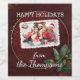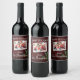 Unique, classic, trendy, pretty and decorative Holiday season wine label. Fun faux gold confetti pattern on a dark red background, with leaf and hazelnut image. With room to customize with photo of your choice, and personalize with your family name.