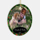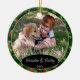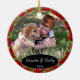 Cute December Christmas holiday tree ornament with room to personalize or customize with your family name in an elegant font script, personal photo and year date of your choice. With a pretty stylish seasonal green Holly leaves and Red Berries pattern background as decoration. Unique memories keepsake that your kids' grandparents, other family members or your friends will love!