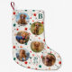 Decorate your home and spoil your favourite pet with this super cute custom pet photo collage and monogram christmas stocking in a red snowflake background..