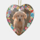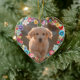 Custom Photo Pet Memorial Floral Blue Heart Shape Ceramic Ornament