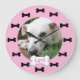 Custom Photo Pink and Black Dog Bones Personalized Large Clock