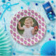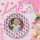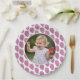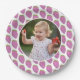 Cute personalized paper plates featuring a pink handpainted watercolor strawberry pattern, perfect for a Berry First Birthday party. Insert your own little strawberry girl's picture to customize it.