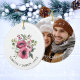 Custom Photo Pink Floral Christmas Ceramic Ornament