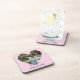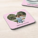 Custom Photo Pink Heart Frame Modern Calligraphy Coaster