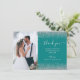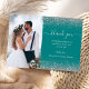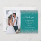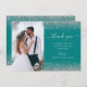 Custom Photo Teal Blue Silver Glitter Wedding Thank You Card