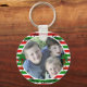 Custom Photo Template Red Green Stripes Mistletoe Keychain