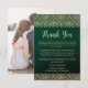 Custom Photo Thank You Rustic Emerald Gold Lace Card