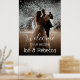 This custom photo wedding welcome sign features a photo template for uploading your desired photo in place of the image shown as a placeholder. Modern hand script style typography invites guests with a high-visibility "Welcome". Personalize the couple's names for a wedding welcome sign that is unique and yours! This can be hung or leaned against an easel, stand or wall.
