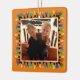 Custom Photo with back text Party Lights Orange Ceramic Ornament